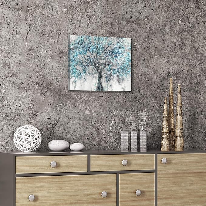 - Blue abstract wall art: Wipe lonely tree artwork wall decor with dry cloth only. A set includes 1 tree painting ( 12x16 inches ). Copyright licensed image with high resolution definition