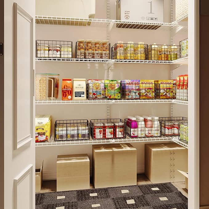 X-cosrack Metal Wire Basket Pantry Baskets Foldable Cabinet Organizers with Handles-6 Pack-12"x9"X6", Food Storage Freezer Organizer Bins for Kitchen Bathroom Laundry Closet Garage - Patent Design