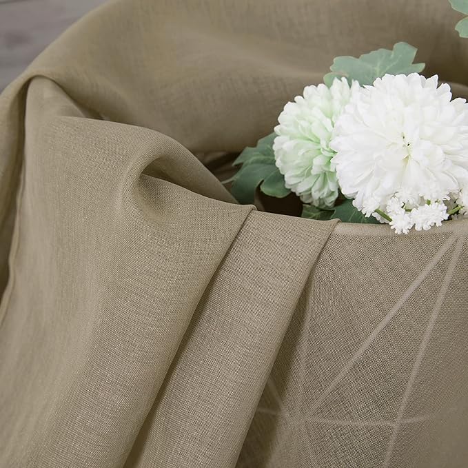 Tollpiz Sheer Curtains Linen Textured Bedroom Curtain Sheers Light Filtering Rod Pocket Voile Curtains for Living Room, 54 x 84 inches Long, Taos Taupe, Set of 2 Panels