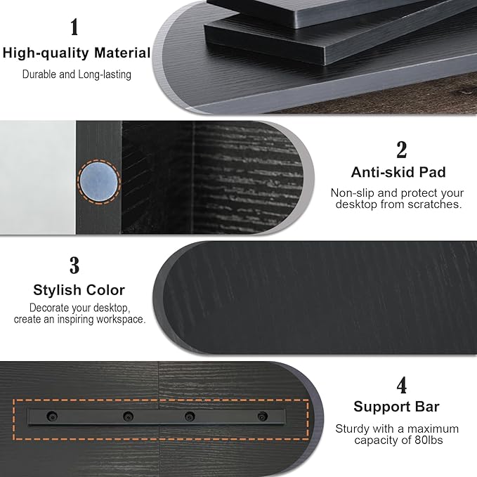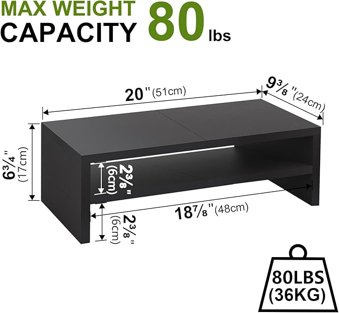 - Better Support to 80lbs: The computer stand is made of eco-friendly thicken MDF wood board, and process optimization to make the stand more beautiful and durable. This monitor stand riser is a good choice for your office, living room, bedroom, and study.