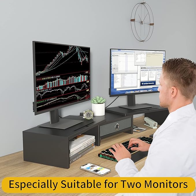 - 【Perfect Storage with Drawer 】Our computer monitor riser includes 13 inches practicality slide-out drawers, for storing items like post-it notes, writing utensils and mobile devices.