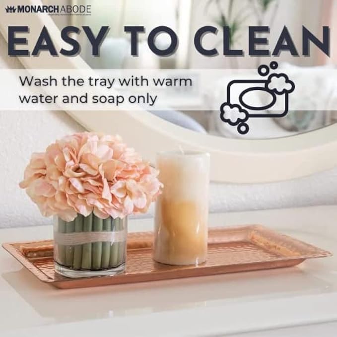 - PREMIUM CRAFTSMANSHIP: Made from high-quality, lightweight metal, this serving platter features a hand-hammered design and lacquer finish for durability and long-lasting shine. It's rust-resistant and built for everyday use. Skilled artisans create these exquisite pieces using high-quality metal, plated luxuriously in nickel chrome, antique copper, dark grey or copper plating. Whether adorning your kitchen, bathroom, office, or any space, these platters exude sophistication.