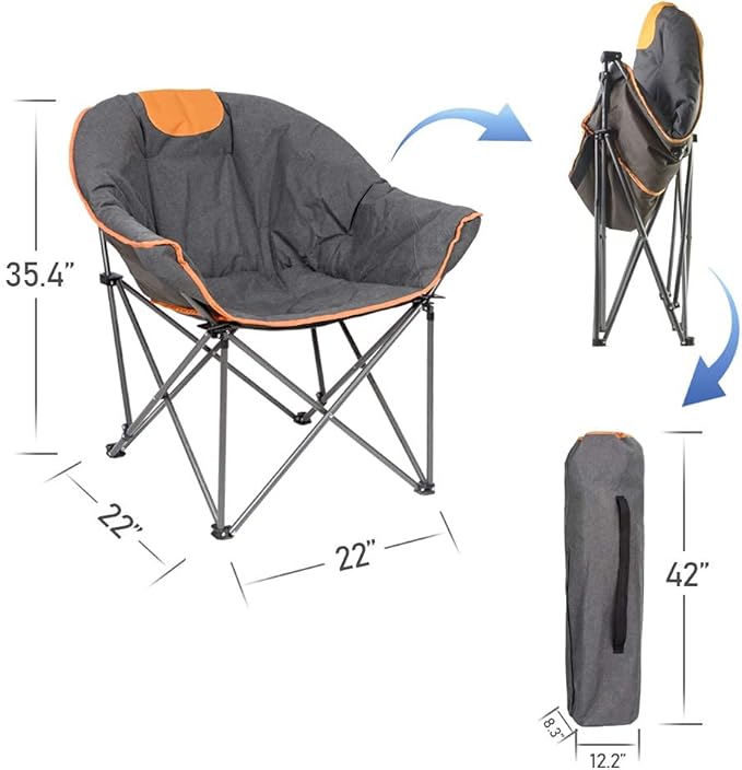 Suntime Sofa Chair, Oversize Padded Moon Leisure Portable Stable Comfortable Folding Chair for Camping, Hiking, Carry Bag(2 Pack)