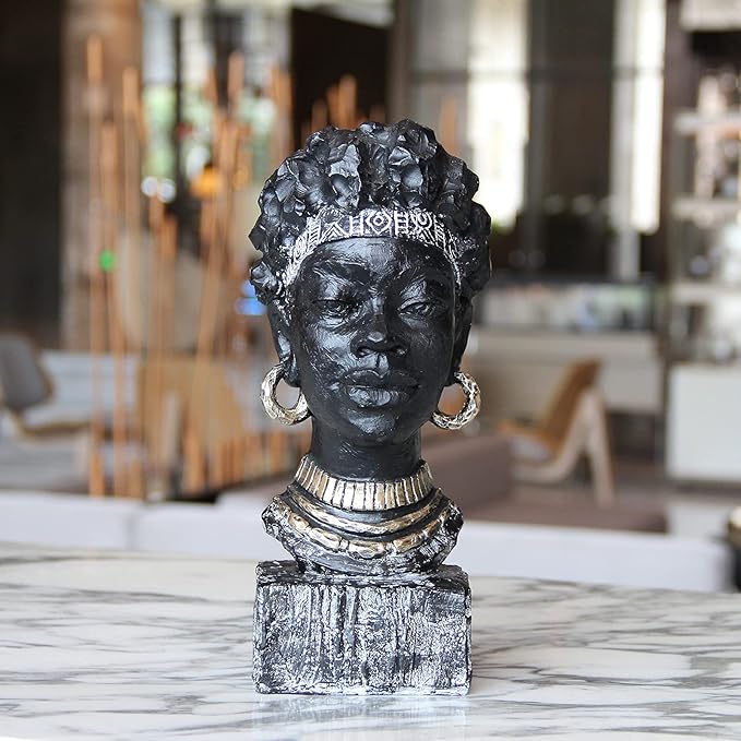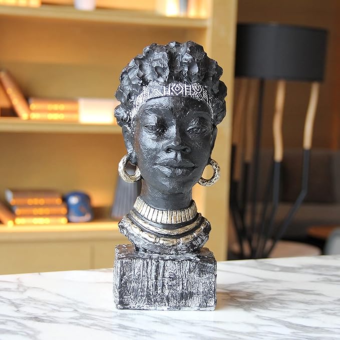- AFRICAN STATUES AND SCULPTURES:The African head statues for home decor is crafted under premium sculpture,hand painting technique with resin material,showing a antique black color appearance.The African figurines is under handcraft and small variation may occur in details,each African art sculptures is unique.