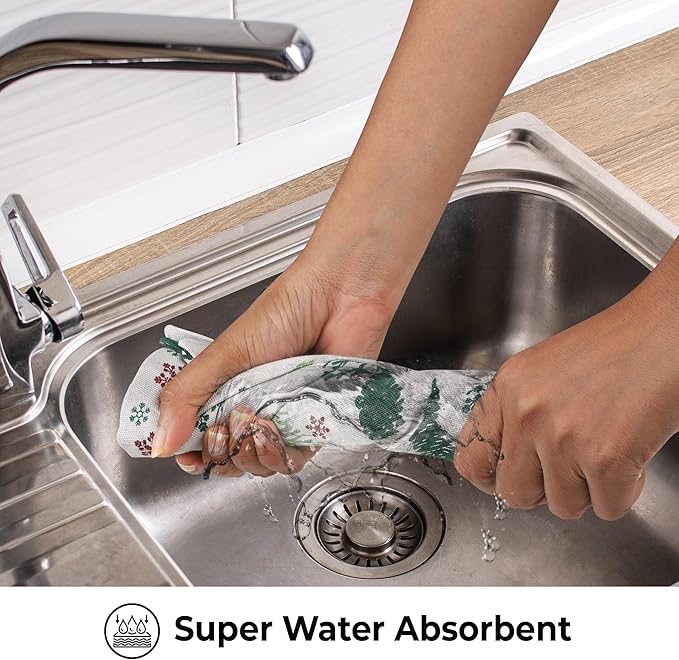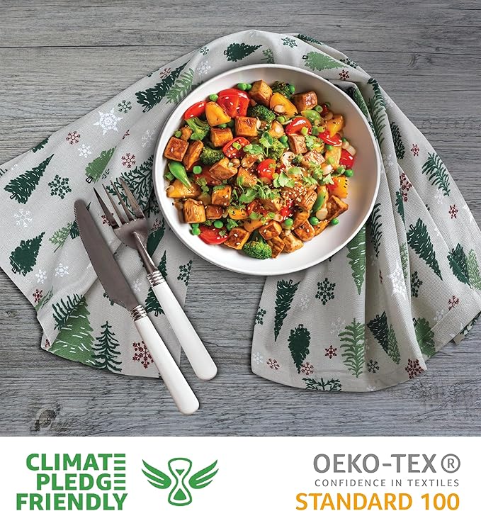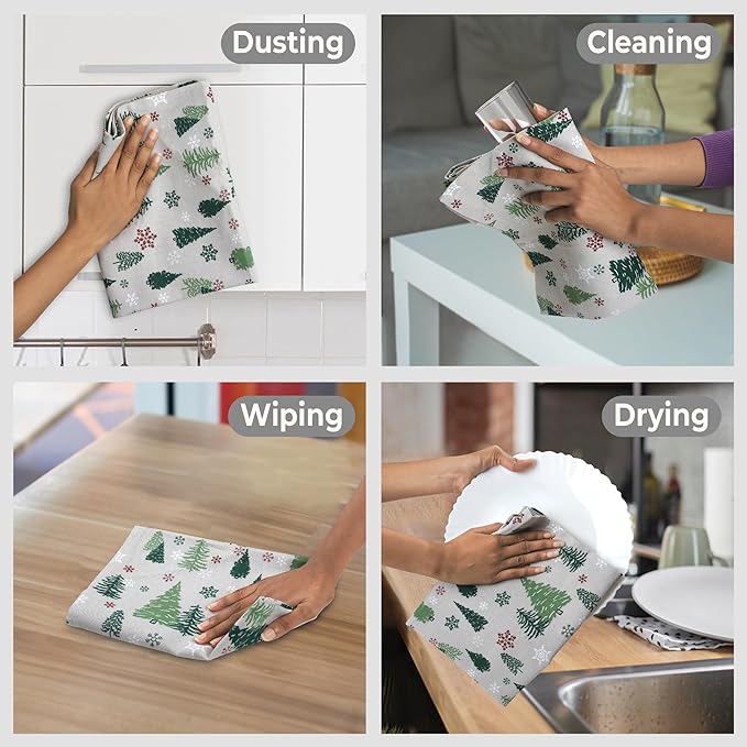 Urban Villa Kitchen Towels Christmas Green Trees Print Premium Quality,100% Cotton Dish Towels Mitered Corners Ultra Soft (Size: 20X30 Inch) Highly Absorbent Bar Towels & Tea Towels - (Set of 6)