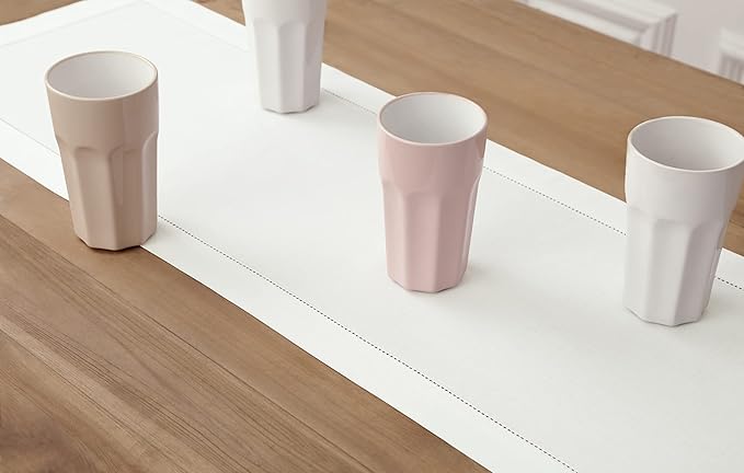 Solino Home White Table Runner 120 Inches Long - Cotton Linen Hemstitch 14 x 120 Inch Table Runner for Dining, Fall, Autumn, Halloween, Thanksgiving, Christmas, Holiday