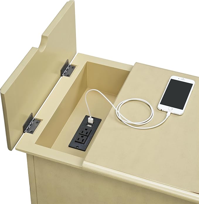 Martin Svensson Home Elegant Chairside End Table with Power, Antique Cream White