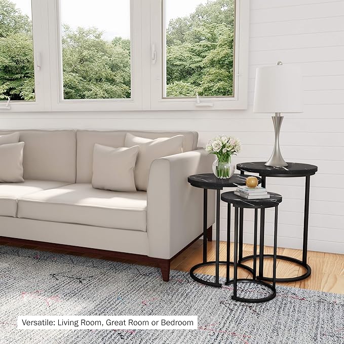 Lavish Home Nesting Tables - Set of 3 Round Side Tables for Living Room, Bedroom, or Home Office - Faux Marble End Table Set - Modern Living Room Furniture (Black)