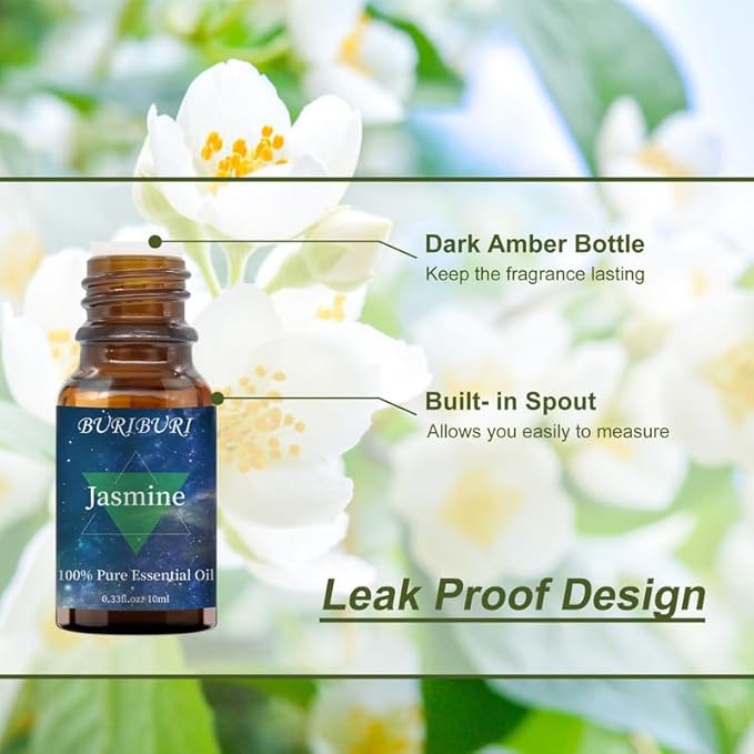 - Packing Includes: 10ml Gardenia Essential Oil x1, 10ml Jasmine Essential Oil x1. With no adulterants or dilution, 100% pure quality. BURIBURI scented oil is bottled in a durable amber glass bottle.