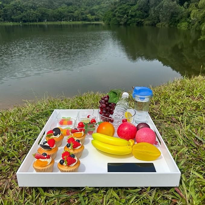 - Multifunctional: Serving tray for serving breakfast, appetizers, coffee, drinks, desserts, snacks, fruit, cheese, food; Decorative organizer tray for cosmetics, jewelry, remote, glasses, ornaments, magazines, Tray can be put on an ottoman, bed, coffee table and couch, It’s elegant to be put on any tabletop or countertop as accessory