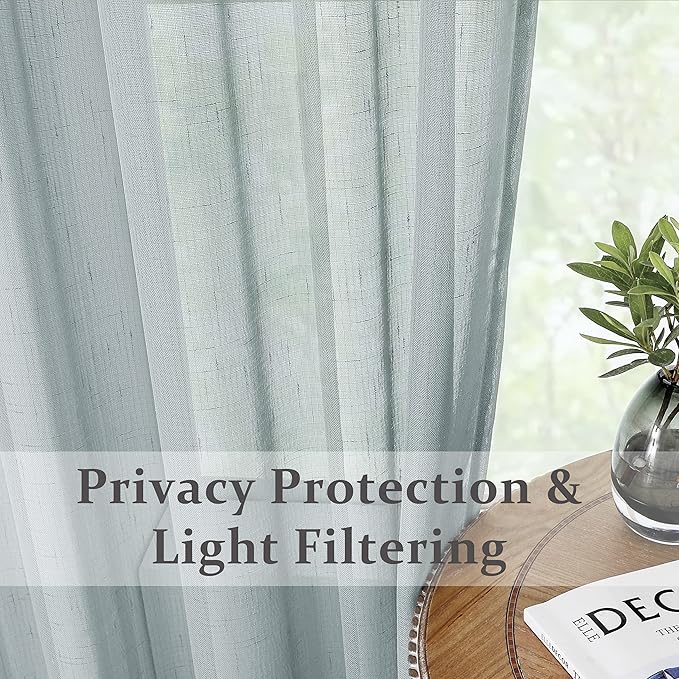 Linen Sheer Window Curtain Panel Pairs 108 Inches Extra Long for Living Room with Grommets/Eyelets Rustic Window Treament Drape Set Bedroom Farmhouse- 2 Panels, Spa/Light Teal, 54x108 Inch