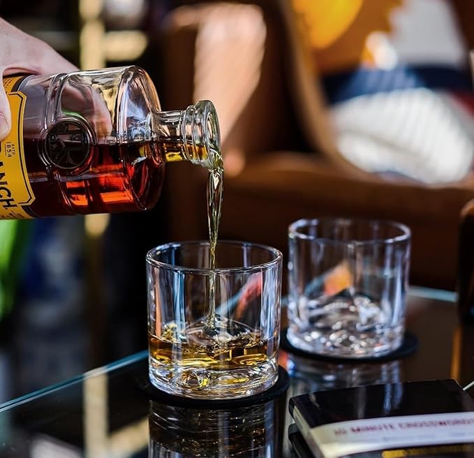LIITON Mount Everest Heavy Crystal Whiskey Glasses Gift Set of 4, Thick Freezable Bourbon Glass 1lb Each, Premium Whiskey Gifts for Men, Frozen Crystal Chills Cocktails, 10 oz