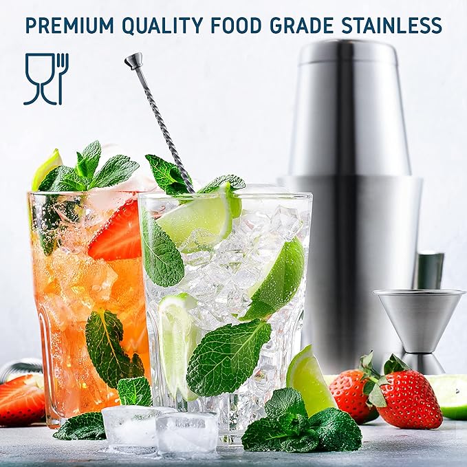 - Professional Bartender Set: Our shaker set, bartender kit is made from commercial-grade stainless steel. Rustproof and dishwasher safe, this drink mixing set is built to last.