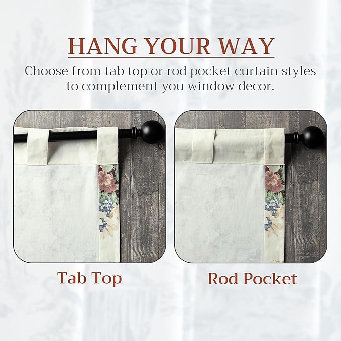 - High-quality cotton: Made from 100% breathable cotton, this curtain with rod and loop pockets offers a soft, elegant touch to any space. Ideal for living room, bedroom, dining, or home office, it brings charm and character without overwhelming your décor