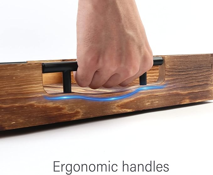 - Quality Craftsmanship: Our wooden tray with handles is made of pine wood, made with strong finger joints, ergonomic grip handles, smooth sanded corners & edges; Built strong for long-lasting use