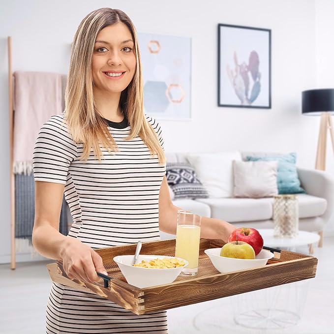 - Multifunctional Ottoman Tray: LotFancy wooden serving tray can be used as breakfast tray to serve breakfast in bed, as a lap tray for indoor outdoor parties, for serving drinks, as a countertop centerpiece with candles, flowers or other home décor; It’s up to you
