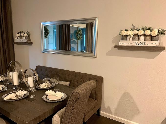 - Elevate Your Space with Rustic Charm: Transform your living room or any space with our large floating shelves for wall. These 24 inch floating shelf beauties, crafted from natural wood, add a touch of rustic warmth and provide ample display space for your cherished items. These are a great depth for photos, and organizing small areas. NOTE: You need to be able to hit one wood stud toward the center of where you want to hang the shelf.