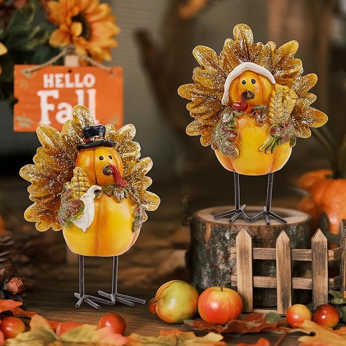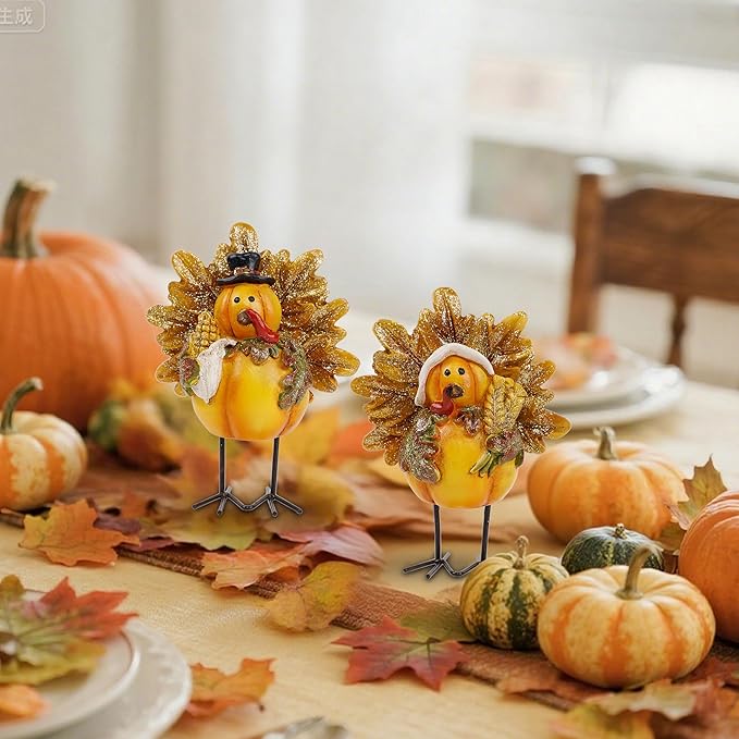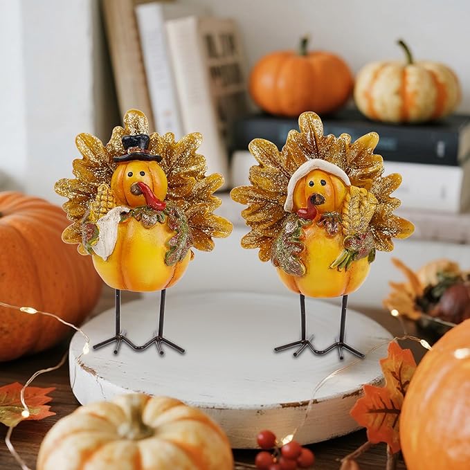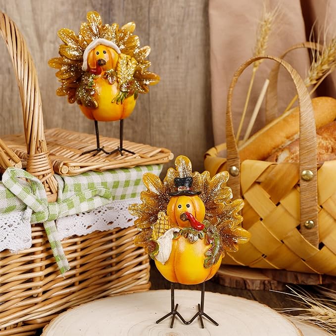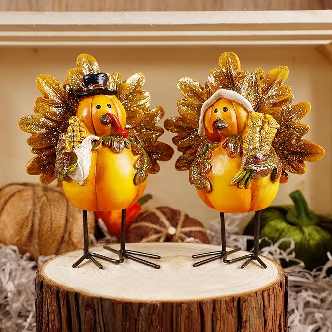 - π₯ Standing Turkey: The resin turkey decorative figurines can freely stand on the table with metal legs. Each adorable little turkey measures 5" x 4", a perfect addition to table Fall decorating.