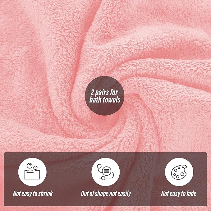 MOONQUEEN 2 Pack Premium Bath Towel Set - Quick Drying - Microfiber Coral Velvet Highly Absorbent Towels - Multipurpose Use as Bath Fitness, Bathroom, Shower, Sports, Yoga Towel (Pink)