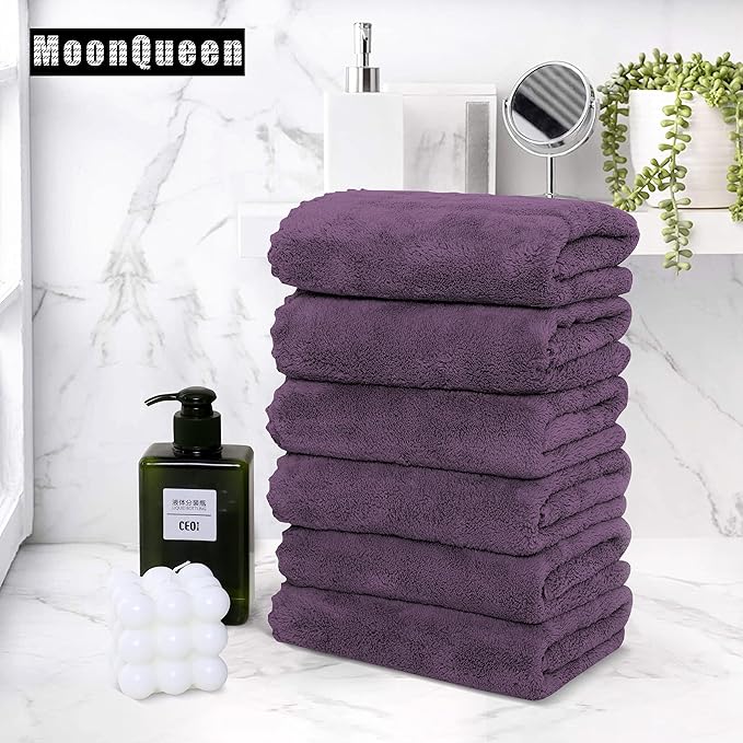 MOONQUEEN 6 Pack Premium Hand Towels - Quick Drying - Microfiber Coral Velvet Highly Absorbent Towels - Multipurpose Use as Hotel, Bathroom, Shower, Spa, Hand Towel 16 x 28 inches (Plum)