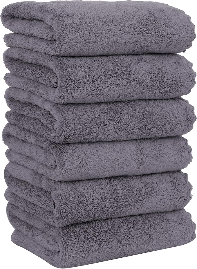 MOONQUEEN 6 Pack Premium Hand Towels - Quick Drying - Microfiber Coral Velvet Highly Absorbent Towels - Multipurpose Use as Hotel, Bathroom, Shower, Spa, Hand Towel 16 x 28 inches (Gray)