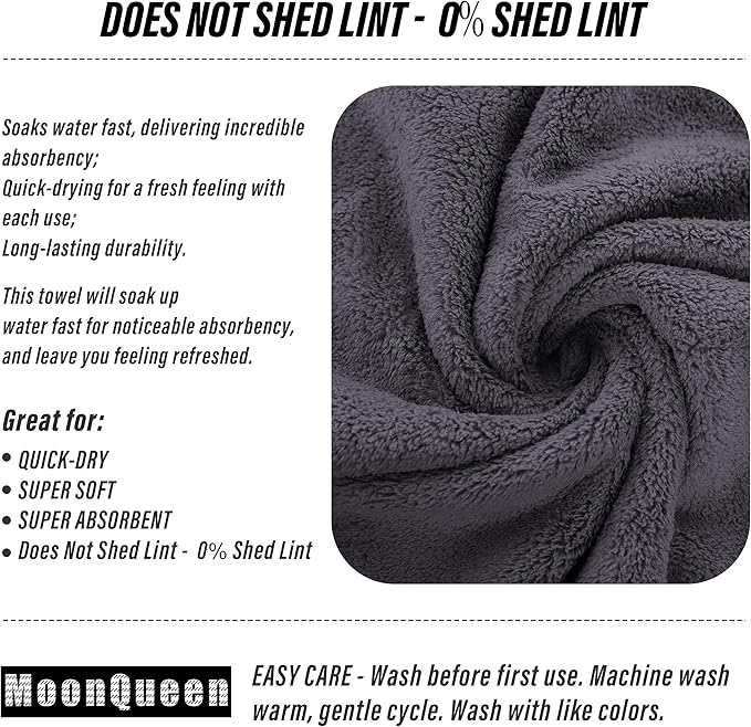 - 【0% Shed Lint】MOONQUEEN User friendly Microfiber coral velvet Widely Used in Options- These quick dry small towels are versatile plush fabric towel, Perfect for poolside, bathroom, Beach, salon, college dorm room essentials , spa, wedding resgisry or gym use. The towel set is designed to provide users with all their basic bathroom drying needs to wrap around your hair or to dry your body.