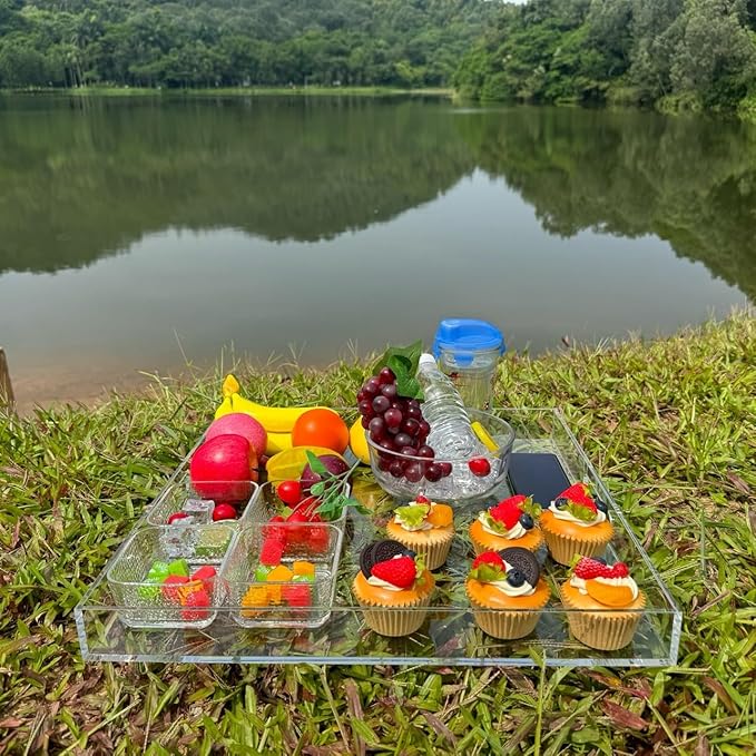 - Multifunctional: Serving tray for serving breakfast, appetizers, coffee, drinks, desserts, snacks, fruit, cheese, food; Decorative organizer tray for cosmetics, jewelry, remote, glasses, ornaments, magazines, Tray can be put on an ottoman, bed, coffee table and couch, It’s elegant to be put on any tabletop or countertop as an accessory