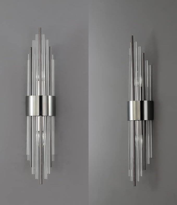 - Workmanship:The vanity wall sconces fixture made of welded stainless steel and crystal glass.The textured design of the gold metal with clear glass rods glass rods is brilliant and luxury.