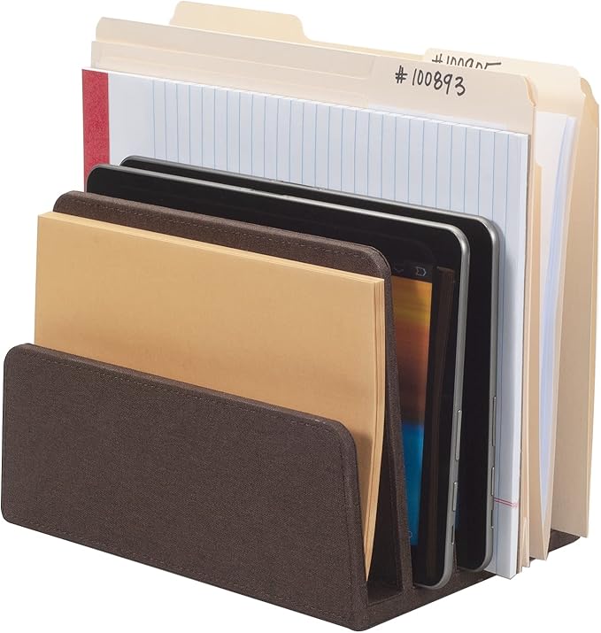 - [Declutter Your Workspace] This executive dark brown organizer features five individual 1-inch wide slots, providing dedicated storage to neatly arrange and keep your smartphones, tablets, and even slim laptops in one easily accessible location, reducing desk clutter and promoting a more organized workspace.