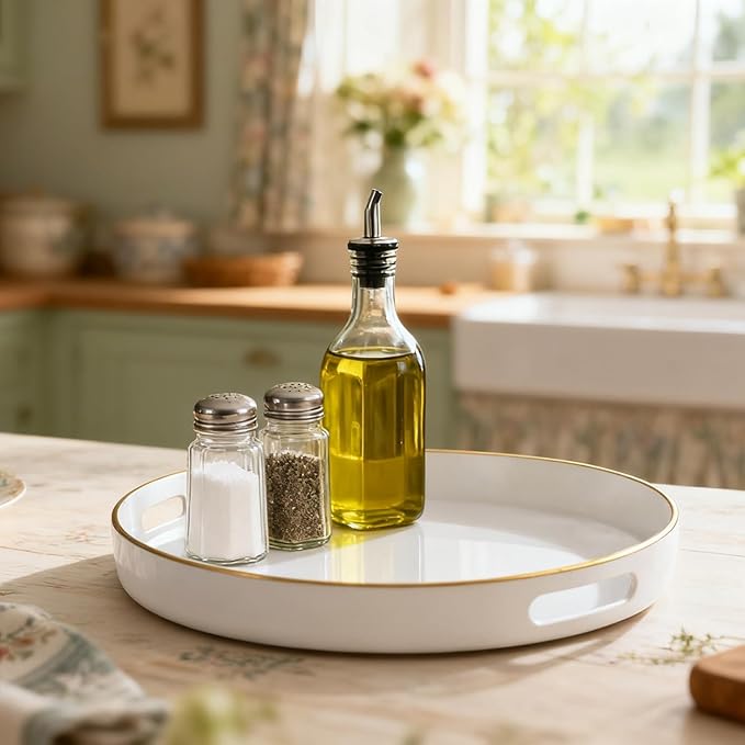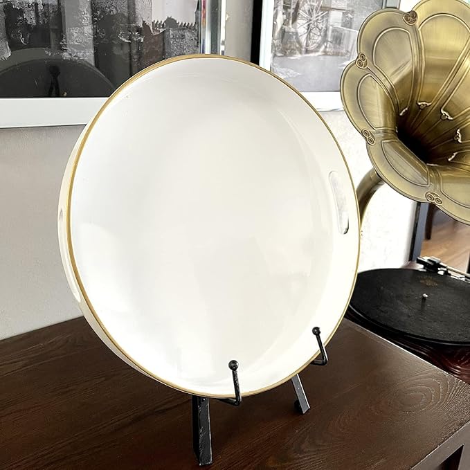 - [Classy & Elegant] - Stunning White coating + Chic gold top rim, this decent round tray can show a sense of understated luxury, greatly matching with both modern & vintage styled items.