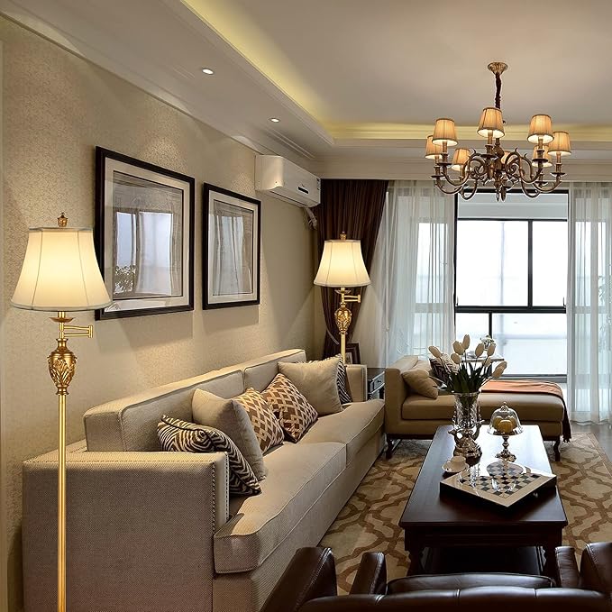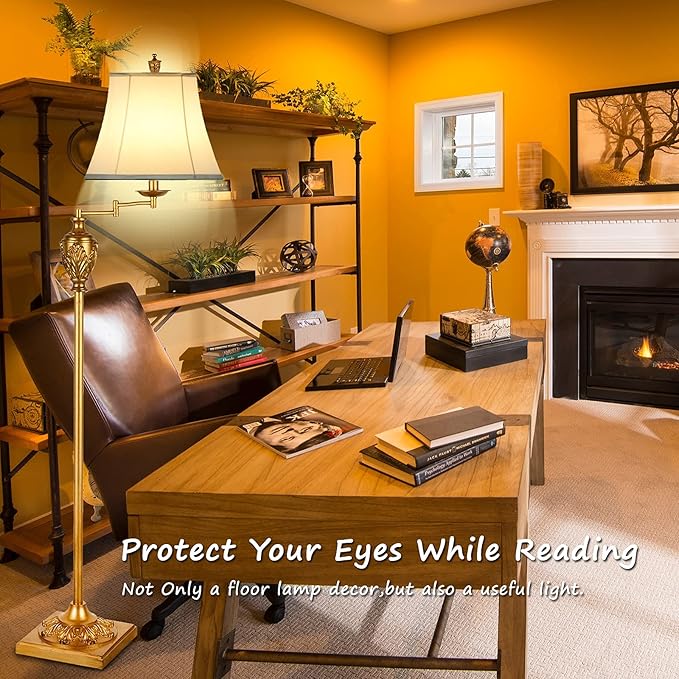 - PORTABLE & 350° ADJUSTABLE SWING ARM – The gold floor light is 60.5 Inches Tall, which is the Ideal Height for Providing a Gentle Glow. It's simple to move the lamp to where it's required. Its extending arm enables you to change the length of the light(No third level dimming)