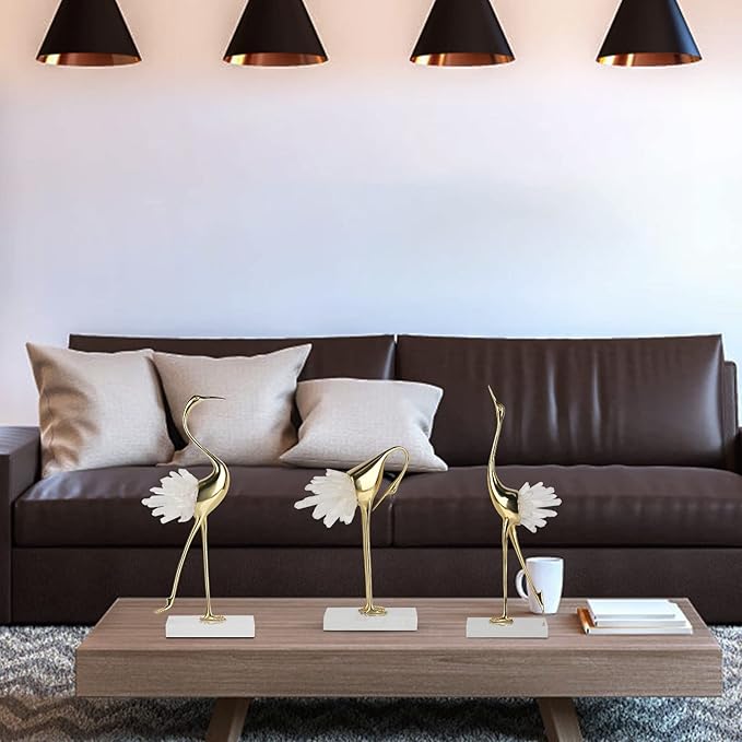 - Artistic Elegance: These crane statues are finished with a radiant metallic sheen, complemented by the crystal-like tail accents, providing a delicate balance of artistry and sophistication for any interior setting.