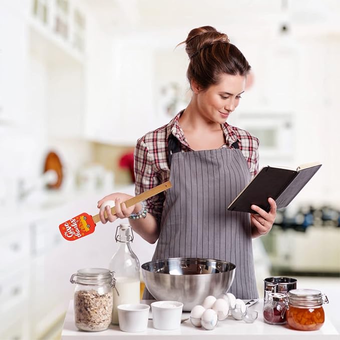 Thanksgiving Silicone Spatula Set Heat Resistant Home Kitchen Baking Decor Gift for Mom Food Grade Idea Birthday Housewarming Wedding Party with Wooden Handle and Colorful Ribbon Bows Mixing Cooking
