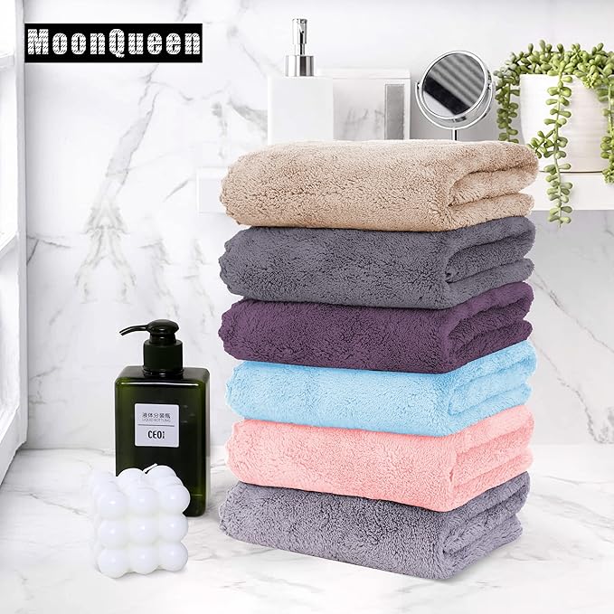 - 【0% Shed Lint】MOONQUEEN User friendly Microfiber coral velvet Widely Used in Options- These quick dry small towels are versatile plush fabric towel, Perfect for poolside, bathroom, Beach, salon, college dorm room essentials , spa, wedding resgisry or gym use. The towel set is designed to provide users with all their basic bathroom drying needs to wrap around your hair or to dry your body.