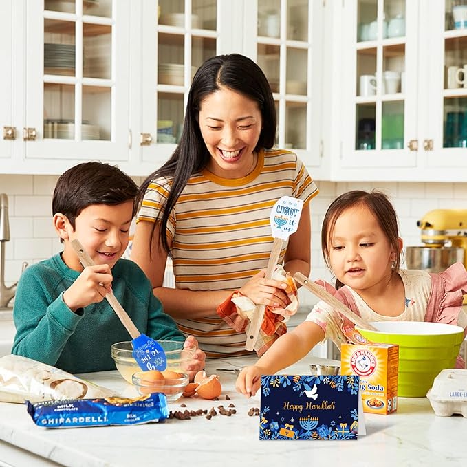 - Suitable Size: Each mixing spatula has been measured approx 2 * 11.6 inches. This size is fit for mixing source, scraping butter, baking, cooking and making pancake. Our Hanukkah spatula allows kids and adults to participate in cooking together. It will be the best choice for parents-child campaign. Take the Hanukkah cooking spatulas set and enjoy the fun between you and your family