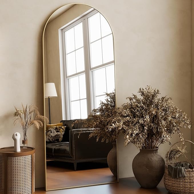 - Full Length Mirror: 65" x 22" & 18" x 58" Arched-top full length mirror for a complete reflection.