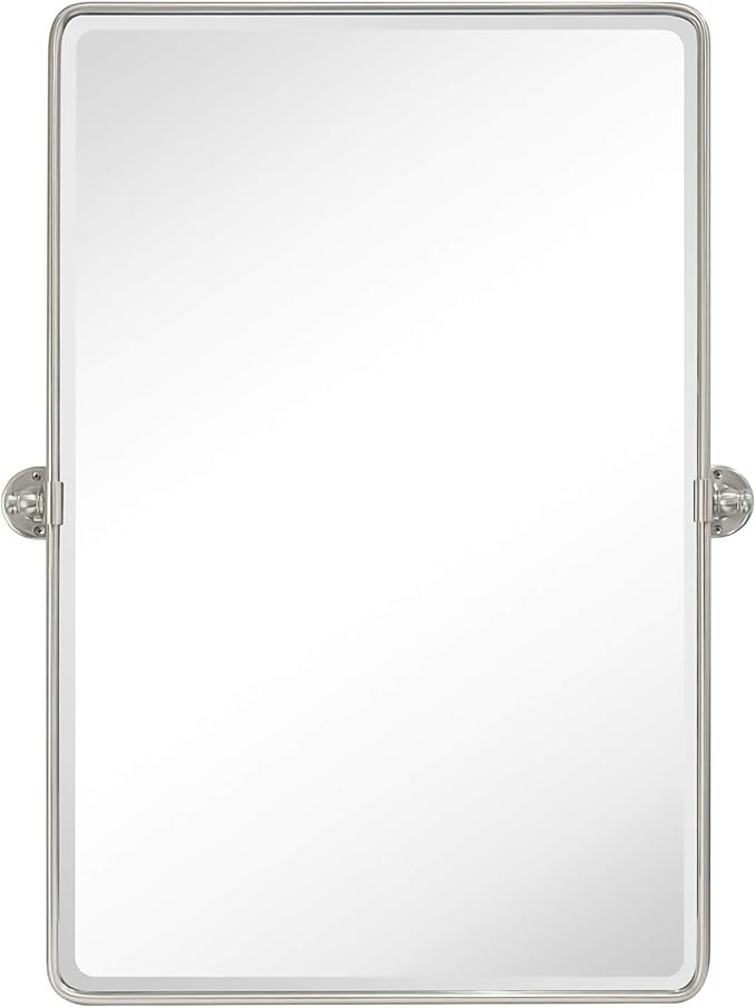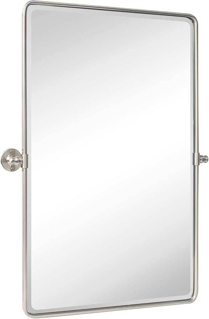 Farmhouse Pivot Rectangle Bathroom Mirror Brushed Nickel Metal Framed Tilting Beveled Vanity Mirrors for Wall, Overall 23.91 x 30 inches (Mirrror 20 x 30 inches)