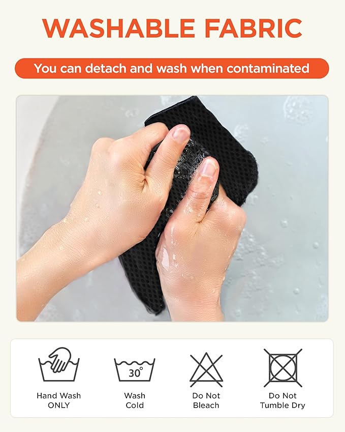 - FEATURES; Washable for everyday stains, Anti-slip silicon dots at the bottom, Breathable mesh fabric for ventilation