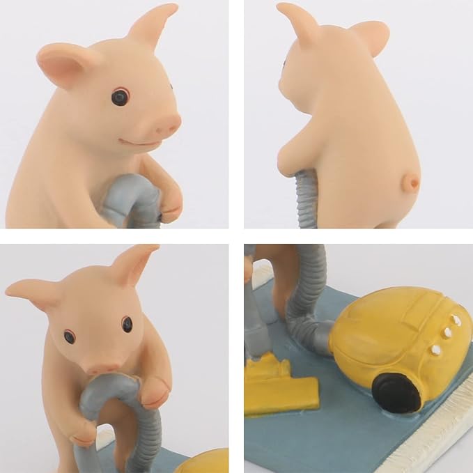 Pig Statue Mini Pig Figurine, Resin Home Decor, Lucky Animal Garden Statue for Micro Landscape (Pigs with Vacuum Cleaners)
