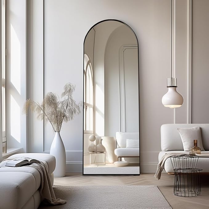 - 【Unique Design】Arched floor length mirror, the design of the black arched full length mirror is even more eye catching. From a distance, it seems like a door or a window, in any space, making your room look more artistic. Elegant style will match nicely with your furniture suitable for living room bedroom closet foyer corridor dressing area.