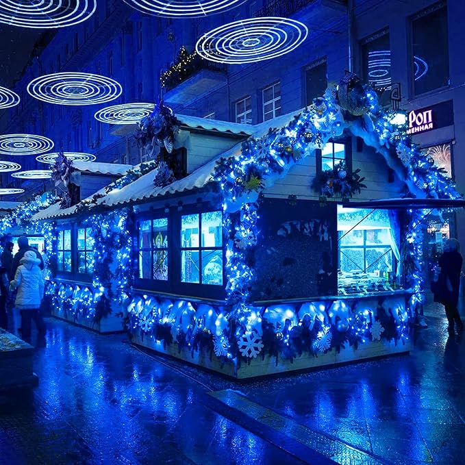 - Extra Long 500 LEDs Blue Christmas Lights- The 163-foot-long lights have 500 ultra-premium LEDs that emit a steady, soft glow. At Christmas, these Christmas lights are long enough to wrap around a 10-foot tree and also shape a family of garden deer. Blue is a classic color that not only symbolizes freedom and justice, but also makes your home's Christmas decorations more elegant and noble.
