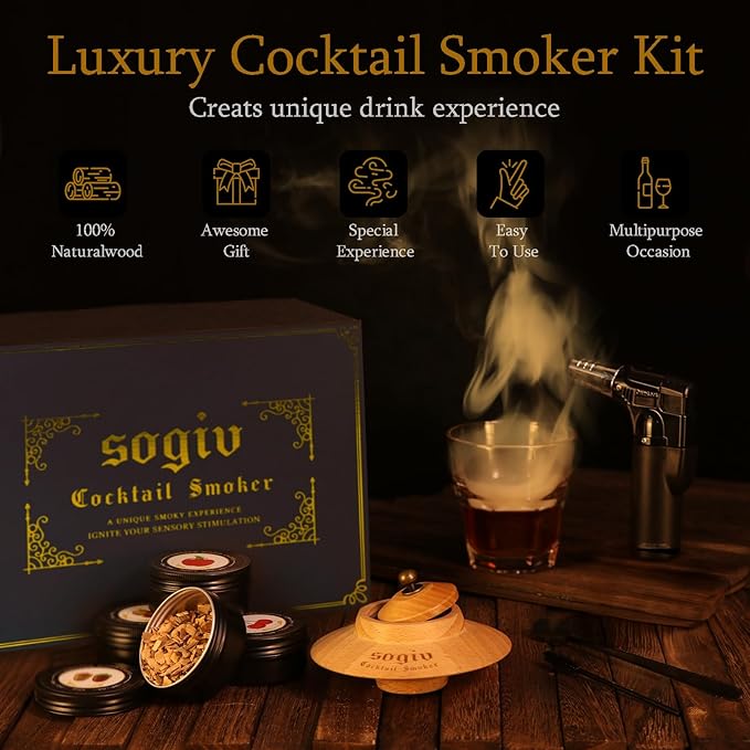 - 【IGNITE THE SENSES】Old fashioned smoker kit can ignite your sensory stimulation.The tender smoky flavor will be produced quickly when cold smoke is absorbed into food and drink.You can clearly feel the flavor of smoky natural wood from your mouth into your body,it will completely change the way you experience food and spirits.Try it with your whiskey or bourbon neat,old fashioned,manhattan,and much more