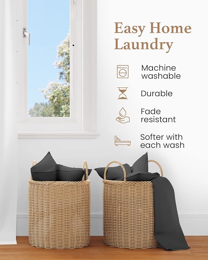 - Egyptian Cotton Sheet & Pillowcases Sets : Our cooling bed sheets are crafted from cotton yarns - sateen weave, offering a full silky feel that is breathable at the same time. You can have these hotel collection sheets that make your bedroom look cozy. These best quality dark gray bedding sheets & pillowcases have a classic design.