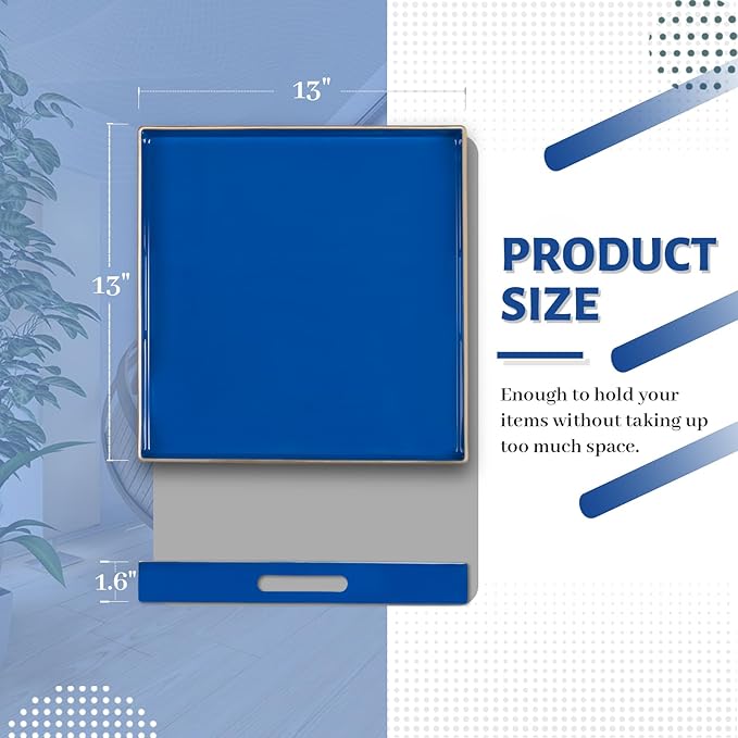 MAONAME Decorative Tray, Royal Blue Serving Tray with Handles, Coffee Table Trays, Square Plastic Trays for Ottoman, Bathroom, Kitchen, 13"x13"x1.57"