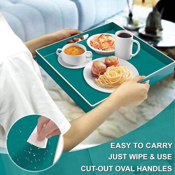 - ELEGANT DESIGN: With a simple solid color finish and golden top rims, the serving tray decorative has a modern and elegant look to create an eye-catching display effect for your items. This chic green decorative tray can add a touch of color to your room and become a great addition to your home.