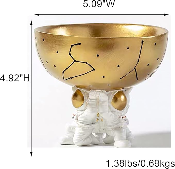 - Sturdy and Durable: Measuring 5.09W x 5.09"D x 4.92"H. The cute astronaut figurine is composed of sturdy resin material. It is well weighted to ensure that it stands up and holds your items. The figurine bowl is practical and durable that will be around you for years.