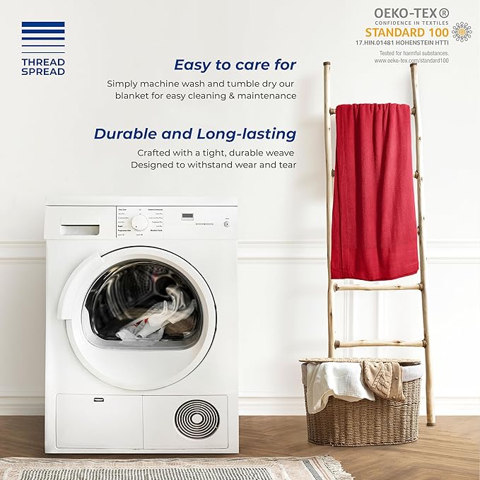 - Lasts a Long Time - Anti-Pilling, Fading, & Shrinkage Fabric: Our luxury cotton blanket king size are tightly woven with a closed-cell construction to extend its service life, reducing shrinkage, pilling, and fading on the wash. This All Season cotton blanket is machine washable, stain and shrink-resistant, and washes as good as new every single time. Don’t use bleach or fabric softeners. To minimize shrinkage, tumble dry on low heat.