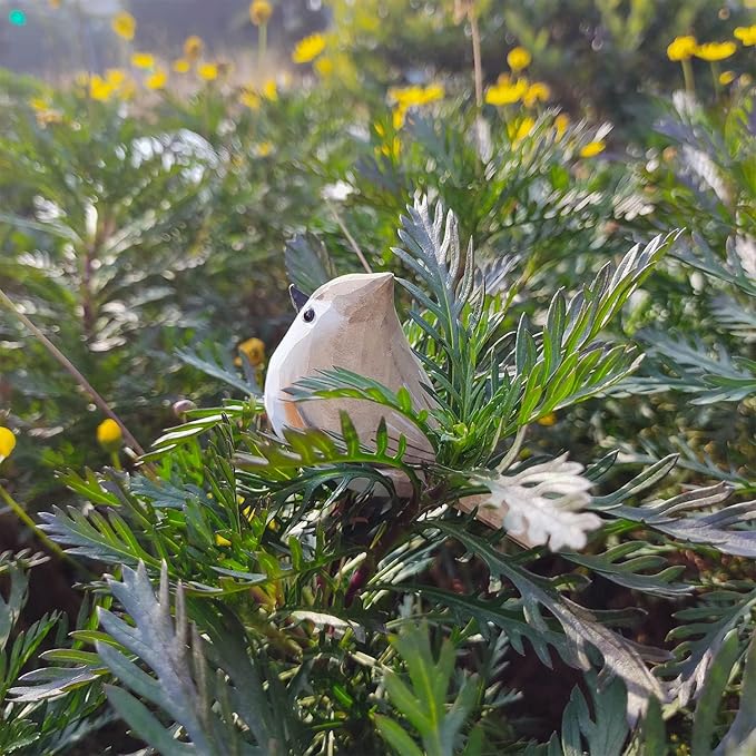 - 【HANDMADE WOOD BIRDS】 The bird is all handmade, from cutting to coloring. Each piece is hand-carved, so the carving and coloring of each product detail are slightly different.Package includes: 1 Tufted Titmouse + 1 small wooden stake.