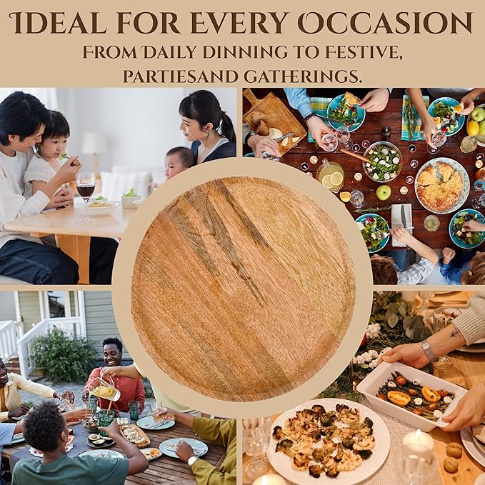 - PERFECT FOR GIFTING & CELEBRATIONS: Elevate any setup—be it holiday feasts, wedding tables, picnics, or family dinners. These versatile wooden chargers also make thoughtful hostess gifts, housewarming presents, or festive party additions.