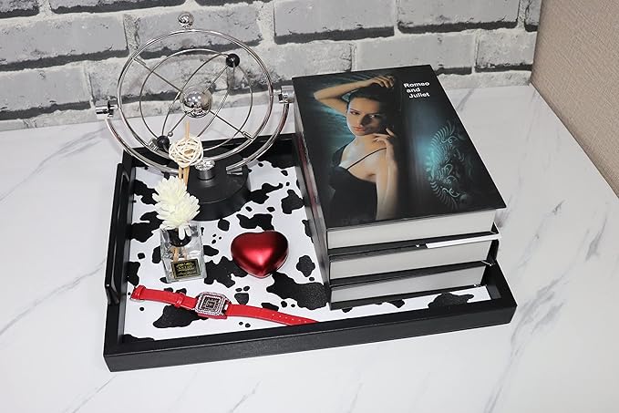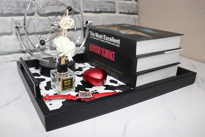 - Versatile Decorative Serving Trays make your life easier while also enhancing your decor. Suitable for living room, dining table, office, hotel room, etc. Keys, wallets, jewelry, cosmetics, coffee and breakfast items can be stored, and stored products will not be thrown away.